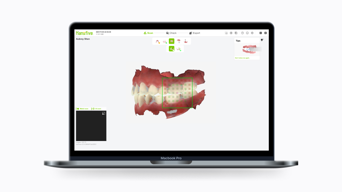 Fast scanningScanning speed 80mm/s, full arch in 90s.