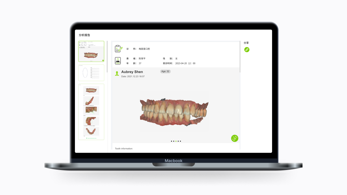 It generates a health report with a single click, enabling the timely detection of oral health issues for effective communication between the dentist and the patient,